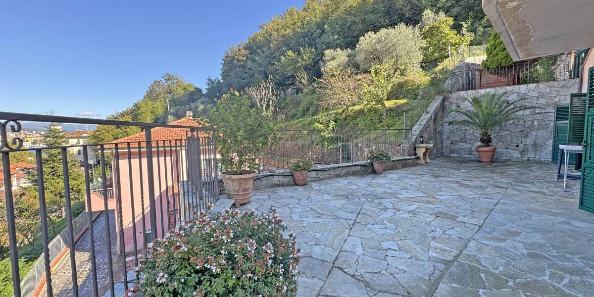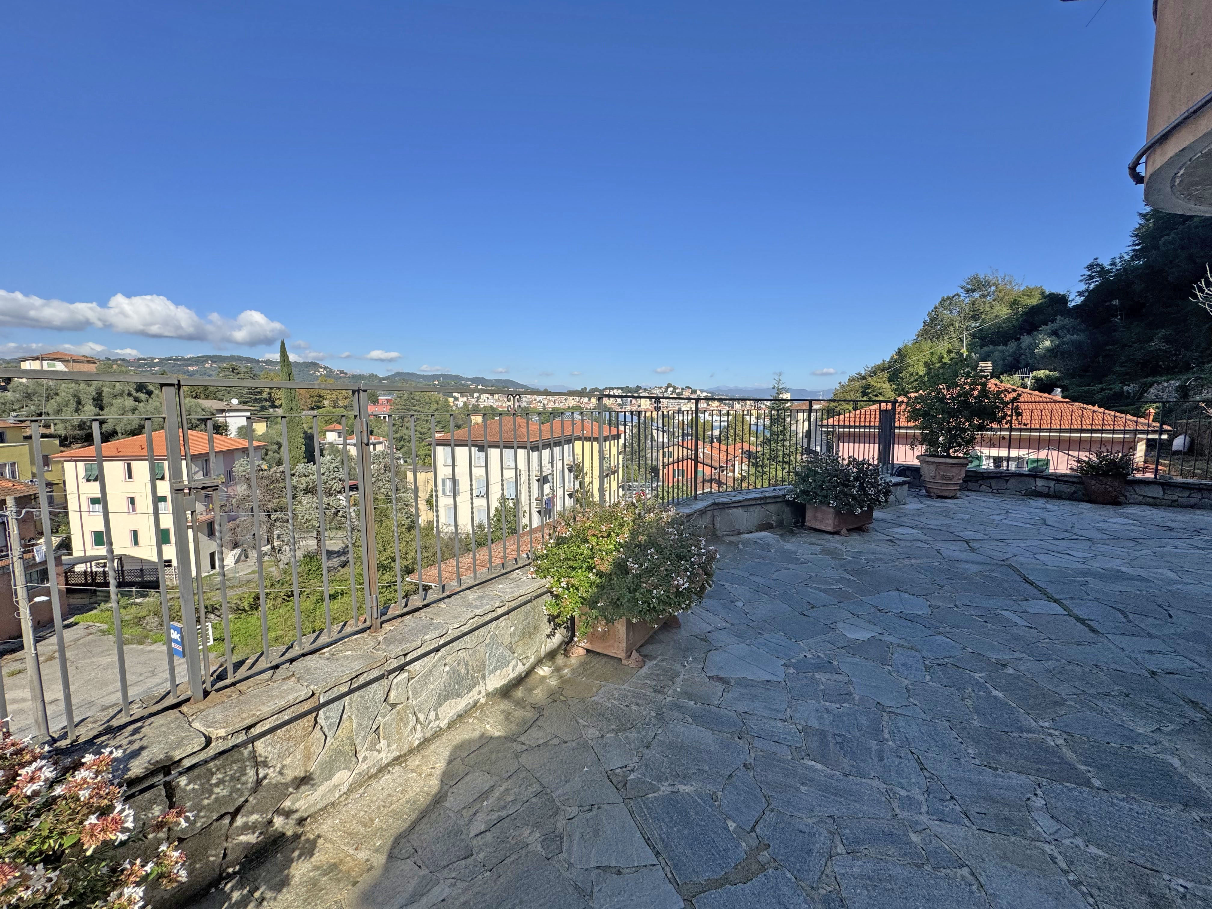 La disposizione interna è la seguente: ingresso in soggiorno, cucina pranzabile, disimpegno zona notte, due camere matrimoniali, camera singola (al momento adibita a zona armadi), doppi servizi e ripostiglio. Tutto l'appartamento si affaccia su di una terrazza di circa 170mq molto panoramica.